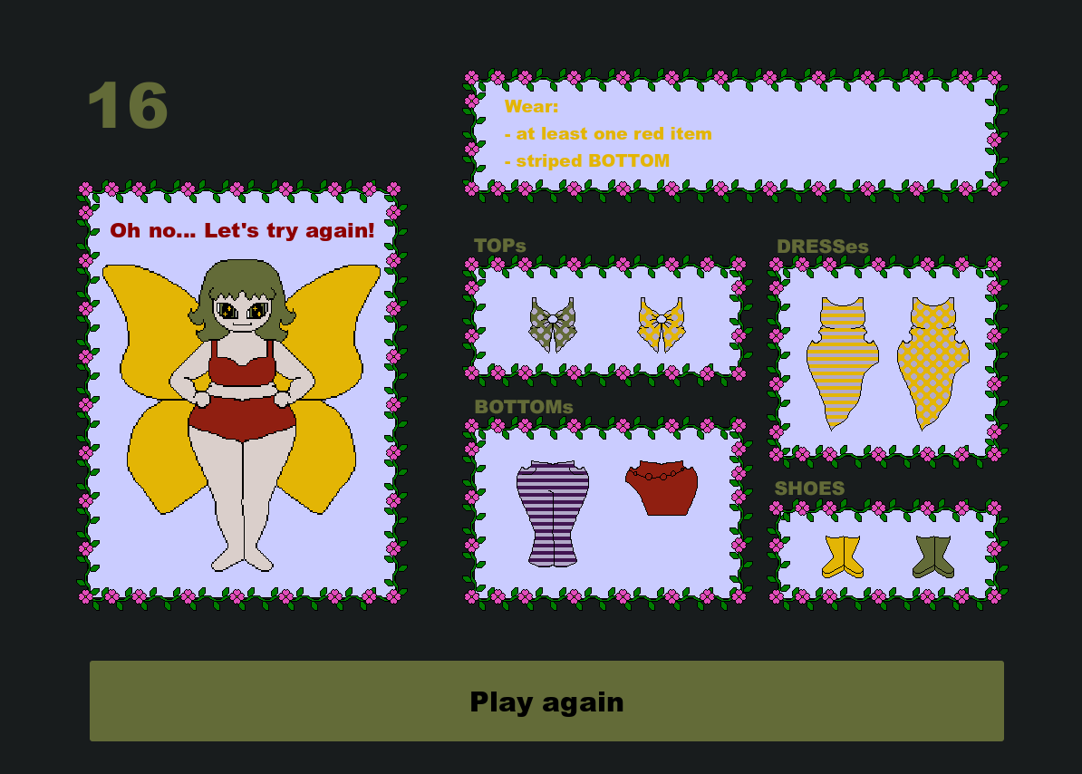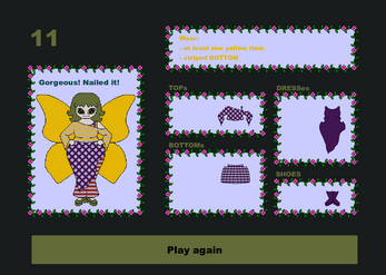 Can you remember and help slightly distorting-looking fairy Sulphur get dressed?